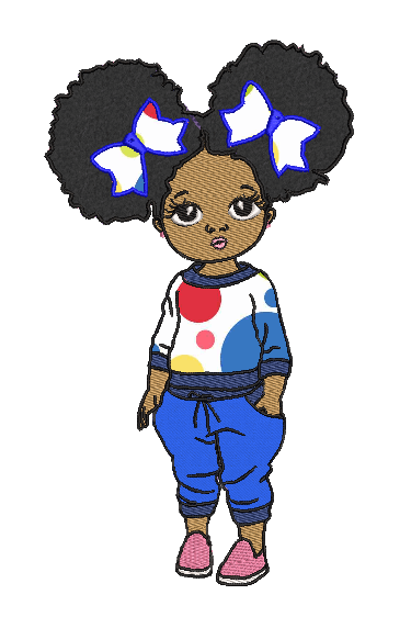Perfect little baby girl design to use alone or with your own phrase. Named after my niece, this design is an applique design. Add your own fabric to the top, pants, and bows for a unique look. For applique instructions, see this video. The first page of the design worksheet can be used as a template to cut your fabric.