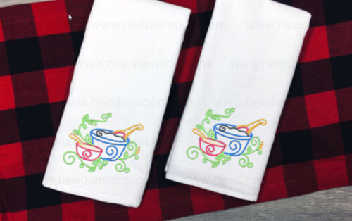 I have a small inventory of onesies, t-shirts, hoodies, towels, etc. for embroidery. I accept customer-provided items suitable for embroidery.